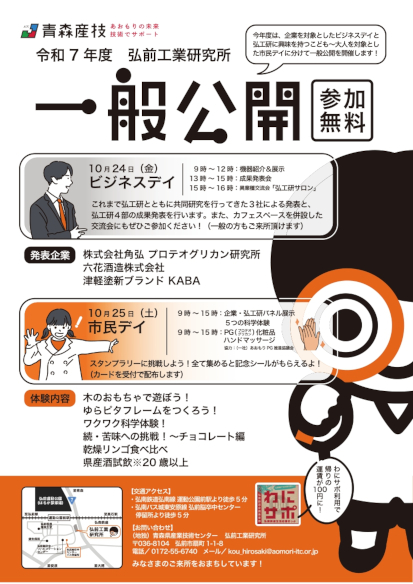 こちらの『令和7年度弘前工業研究所一般公開』(pdf、841kB)もご覧ください。