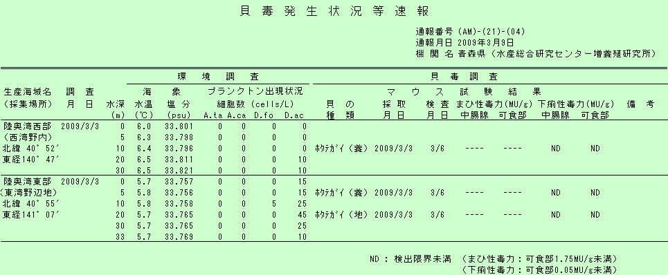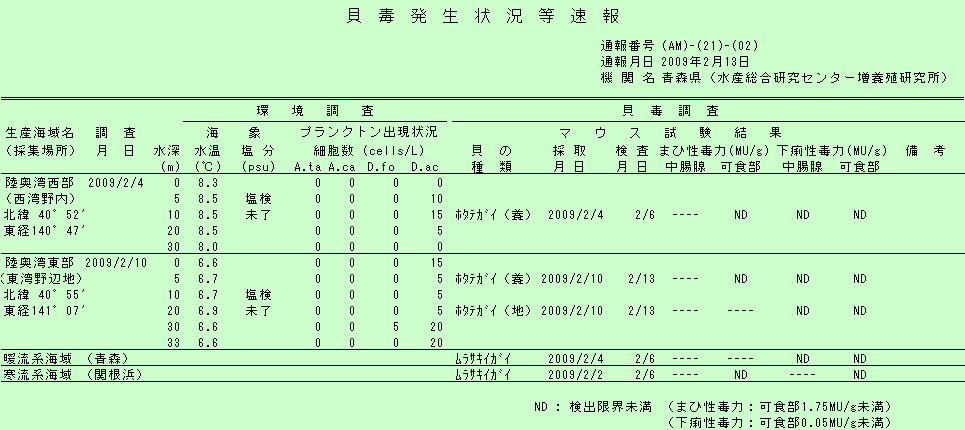 貝毒情報