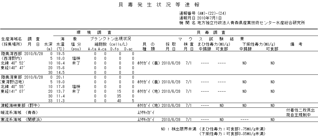 貝毒情報