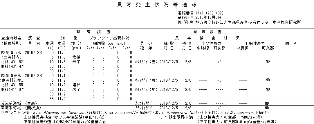 貝毒情報