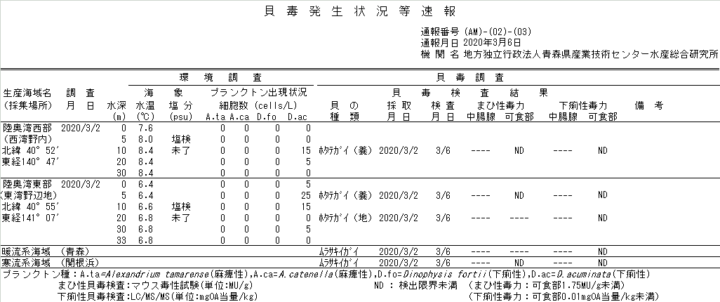 貝毒情報