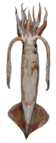 ※生きているスルメイカは内臓が透き通って見えるほど透明です